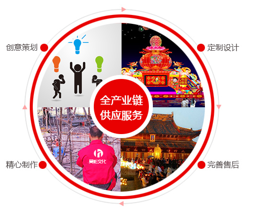 中山市昊彩文化秉承專業、敬業、精業的企業精神,堅持誠信、務實、進取、永續的經營理念,同時依靠先進的技術和設備,嚴把產品質量關,追求客戶100%的滿意度。公司專業從事"中國彩燈"燈會市場開發、創意策劃、技術研發、設計制作、安裝展出、文化創意輸出等為一體的綜合型文化企業,公司依托自身的團隊力量,廣泛開展技術和學術交流,使花燈文化更廣泛地服務于眾多行業。